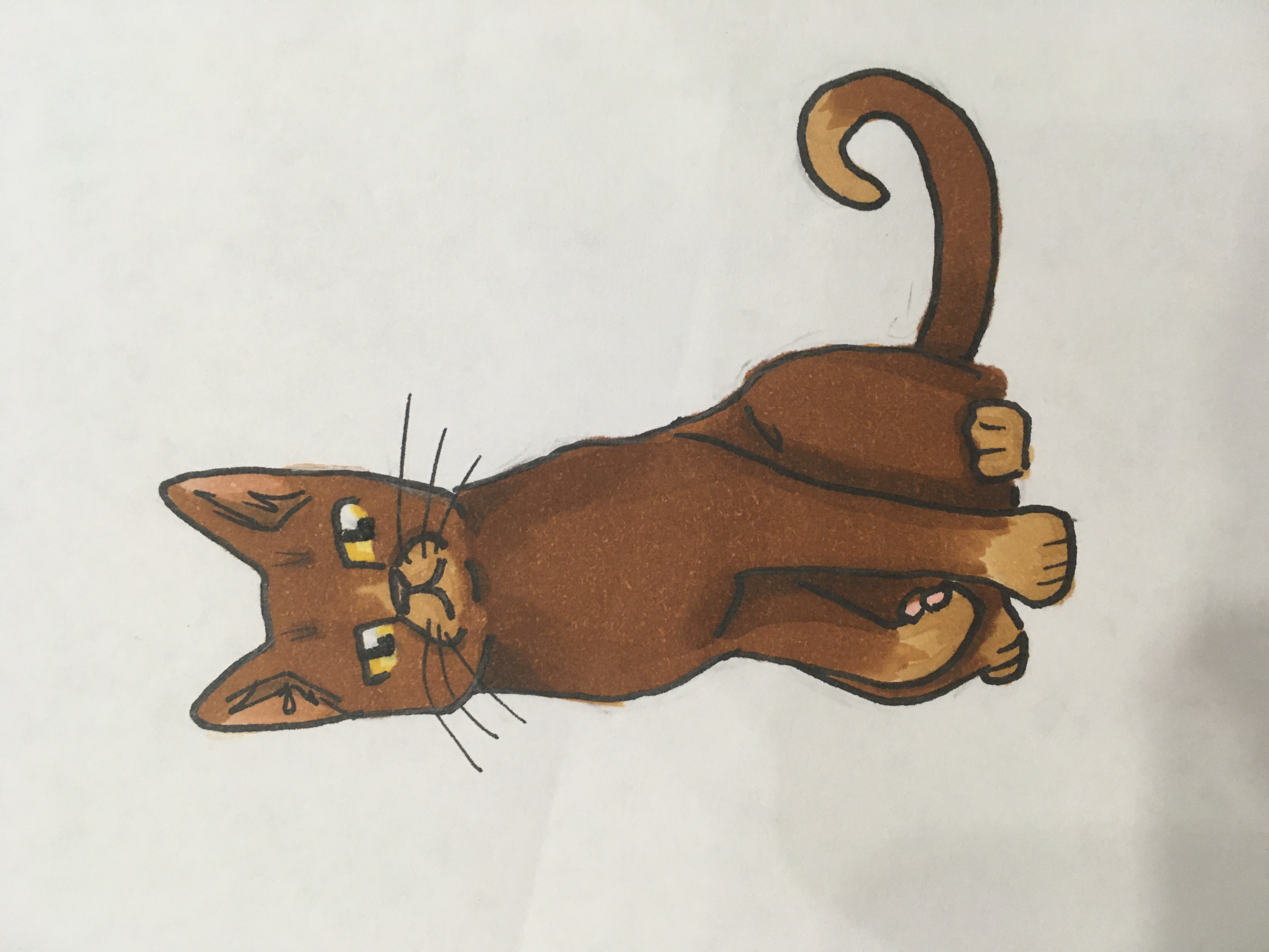 A brown and tan cat sitting. Date: July 15, 2023 Medium: Marker on paper. Description: A brown and tan cat sitting. Category: Cats