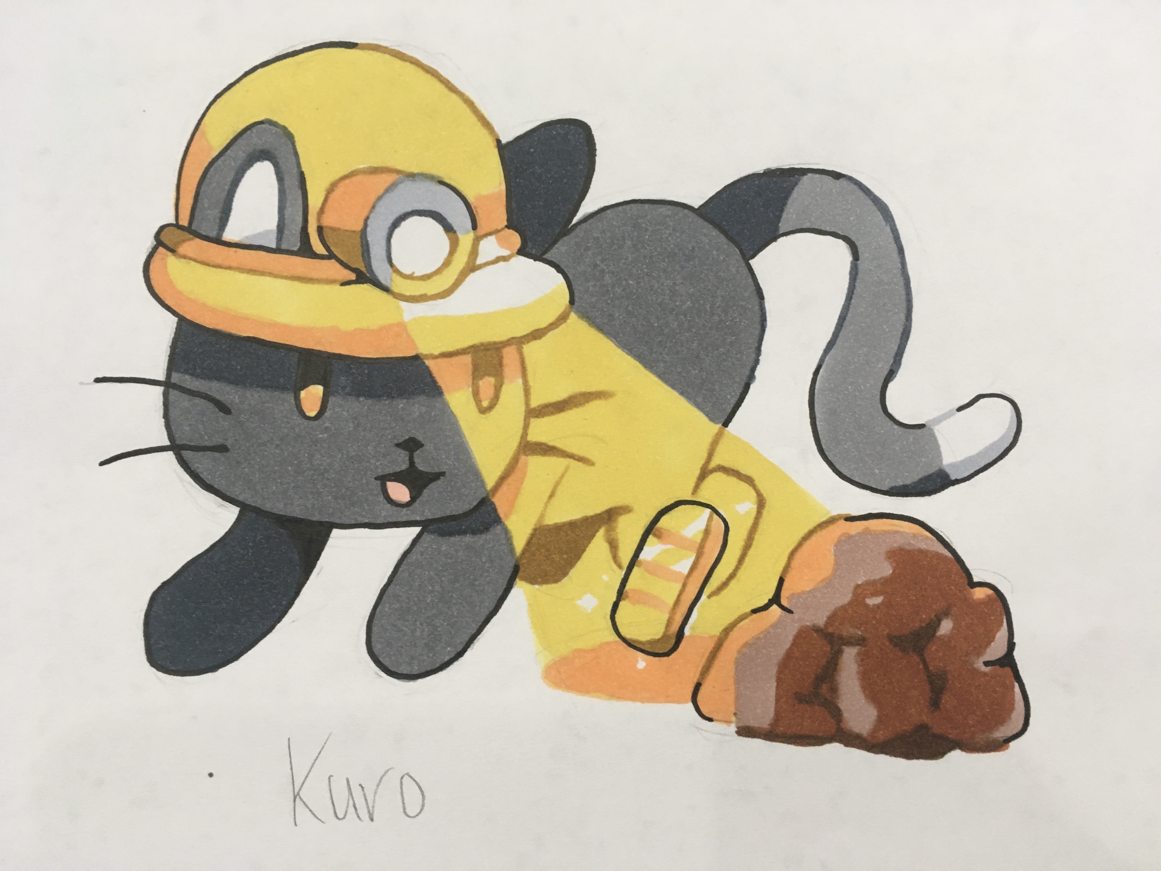 Kuro from Super Cat Tales 2. Date: June 10, 2023 Medium: Marker on paper. Description: Kuro from Super Cat Tales 2. Category: Cats