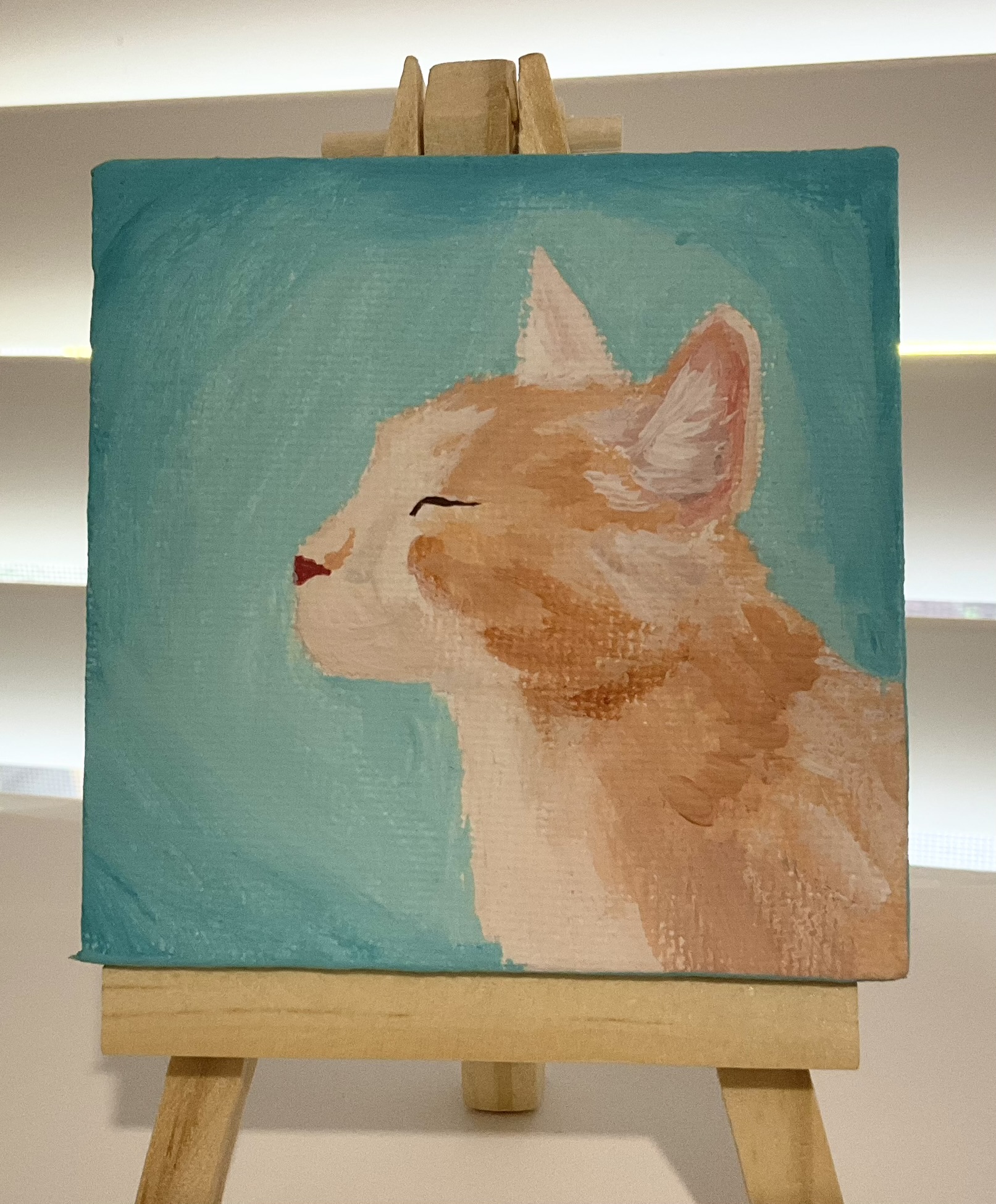 Mici the cat with a blue background. Date: February 7, 2023 Medium: Acrylic on canvas. Description: Mici the cat with a blue background. Category: Cats
