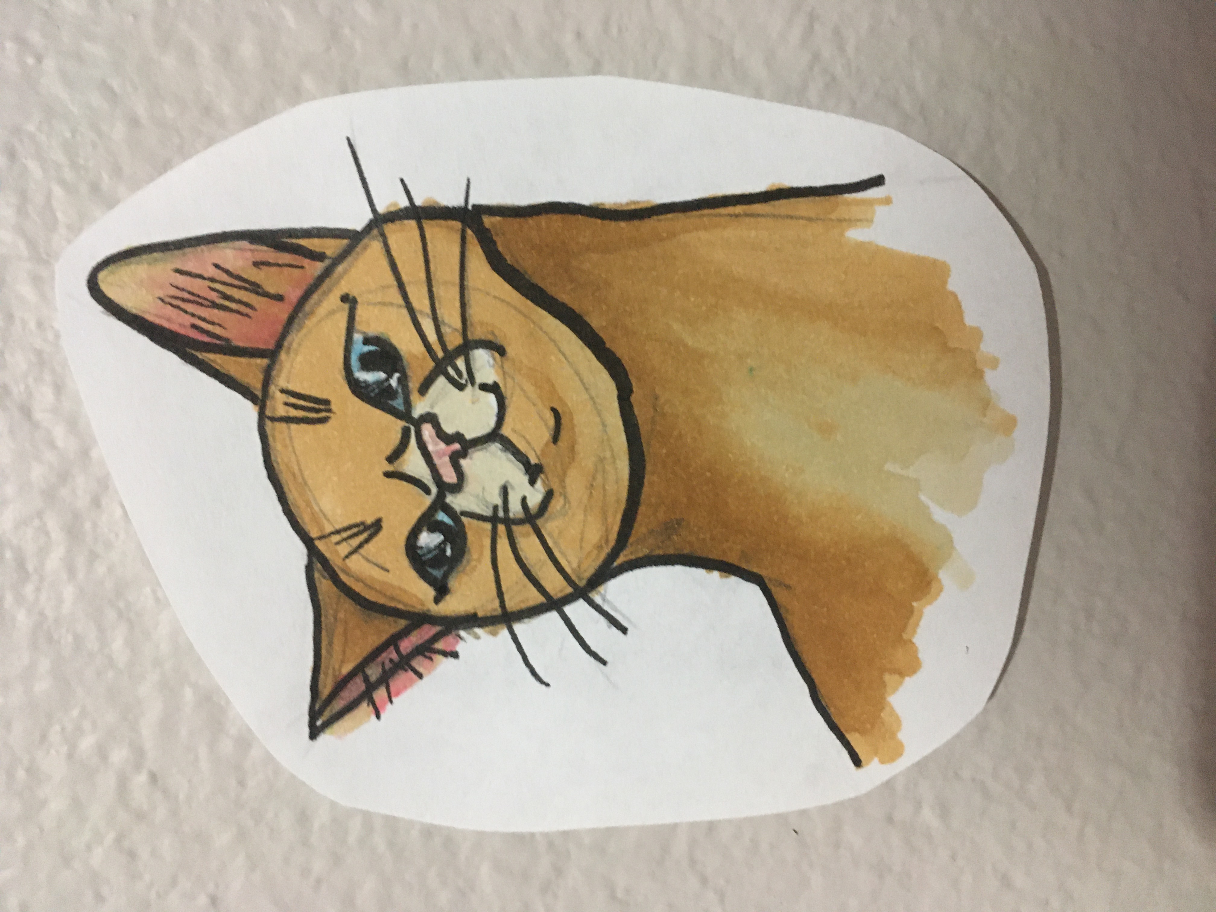 The top half of a tan cat with blue eyes. Date: June 29, 2023 Medium: Marker on paper. Description: The top half of a tan cat with blue eyes. Category: Cats